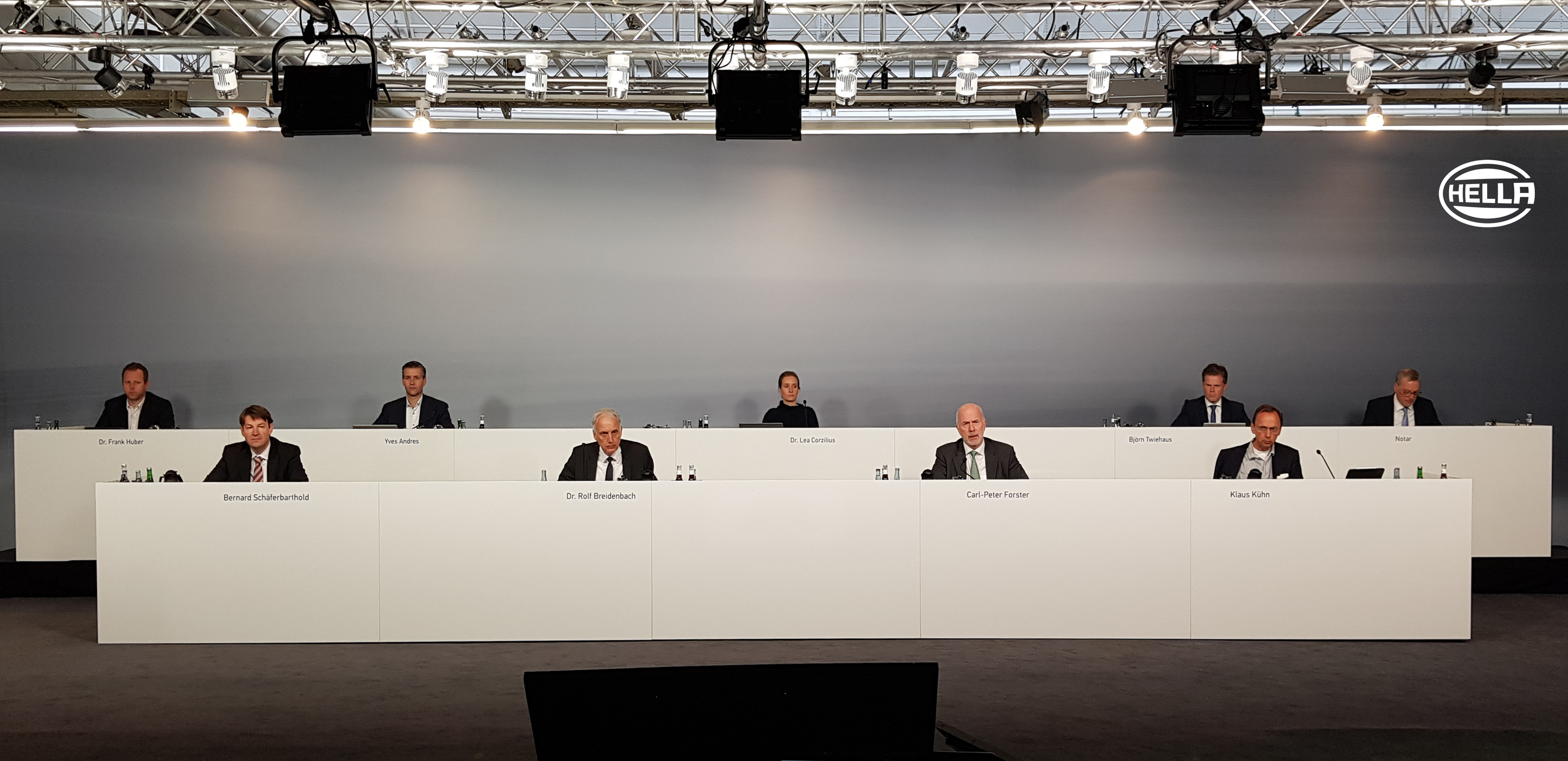 Due to the ongoing Corona pandemic, the Extraordinary General Meeting was held as a purely virtual event without the physical presence of shareholders and shareholder representatives. At the time of the vote, around 84 percent of the voting capital was represented. Further information as well as the voting result on today's agenda item will be published on the HELLA homepage in the